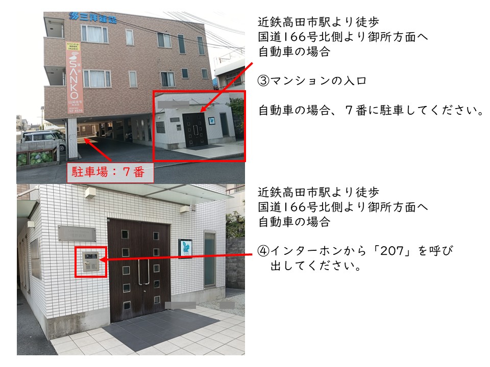 | 所在地 | 〒635-0063 奈良県大和高田市礒野新町1丁目11 ライフインサンヨー礒野新町207号室( お車でお越しの際は敷地内駐車場 7番に御停めください) |